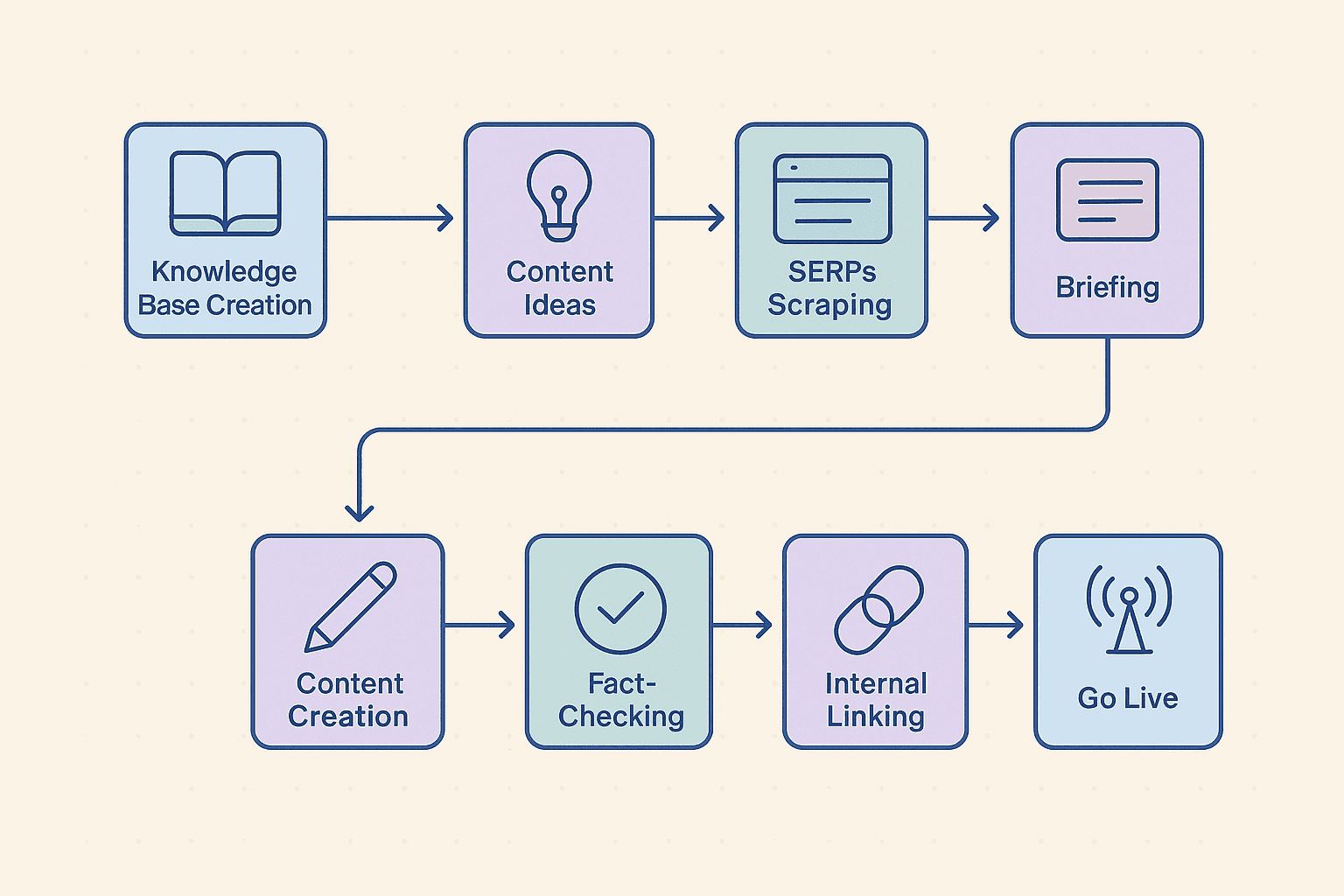 • CSV of target keywords → outputs ready-to-use briefs with outline, sources, CTAs.Content Creation & Fact-Checking